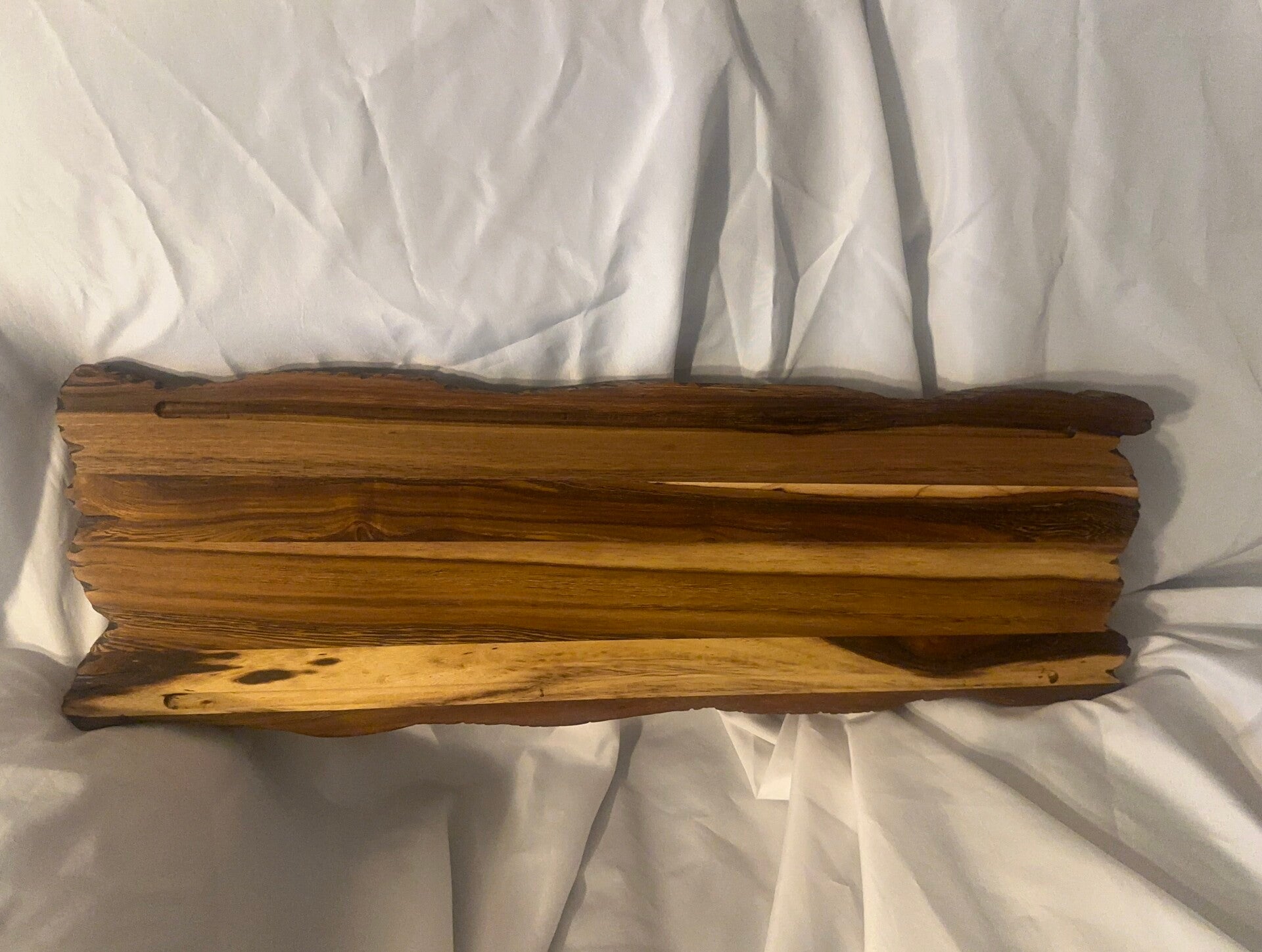 HANDMADE 32” Black Walnut/Claro Walnut Charcuterie/cutting board. Chainsaw chiseled edgework, distressed beautifully. Coated in food grade mineral oil.